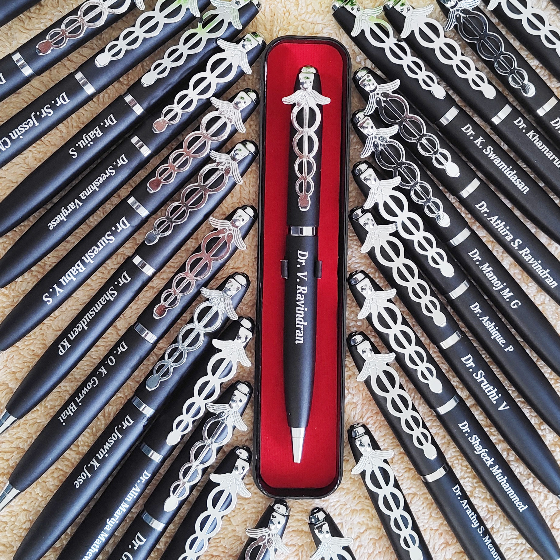 Pen stamps are attractive writing implements, but with the added function of a practical stamp. Modern design β the perfect gift for everyone Available in 3 Colors β Black , Silver , Golden Rubber part for convenient and precise operation of smartphones and tablets. High Quality stamp included full metal construction Special cover with unique magnetic clasp Integrated touch screen stylus Aluminium parts for personalisation with laser engraving Large imprint possible despite the slim design( 8X33 mm) GIFT BOX ₹1,000.00 -