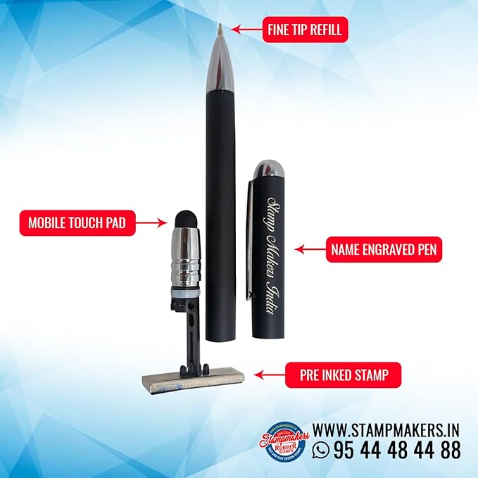 Pen stamp is a unique product that help you to use as a ball pen and Pre ink stamp. and its a best product to give gift to your loved ones.